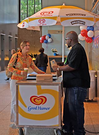 Toucan Davee C inadvertantly gets caught handing out ice cream to event guests. It's the risk every Toucan takes when we self-serve at the ice cream cart!